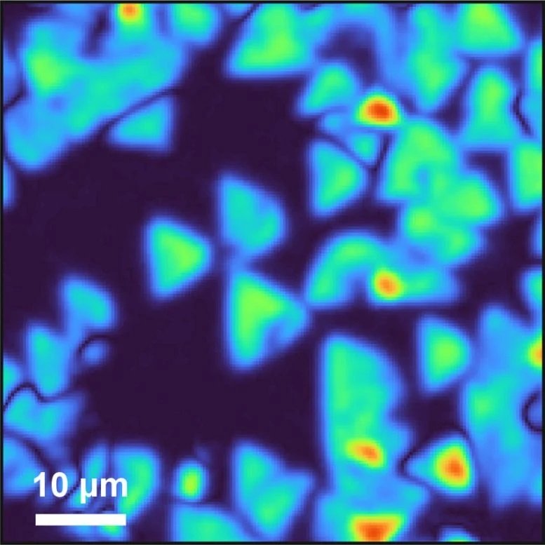 Thanks to their new microscope, the researchers revealed that the 2D layers of hBN that grow in triangular domains display nitrogen-terminated zigzag edges. Moreover, the observed high nonlinearity in the frequency range of the vibrational resonance highlights monolayer hBN as a promising material for frequency upconversion – from the infrared into the visible – in new optoelectronic devices.